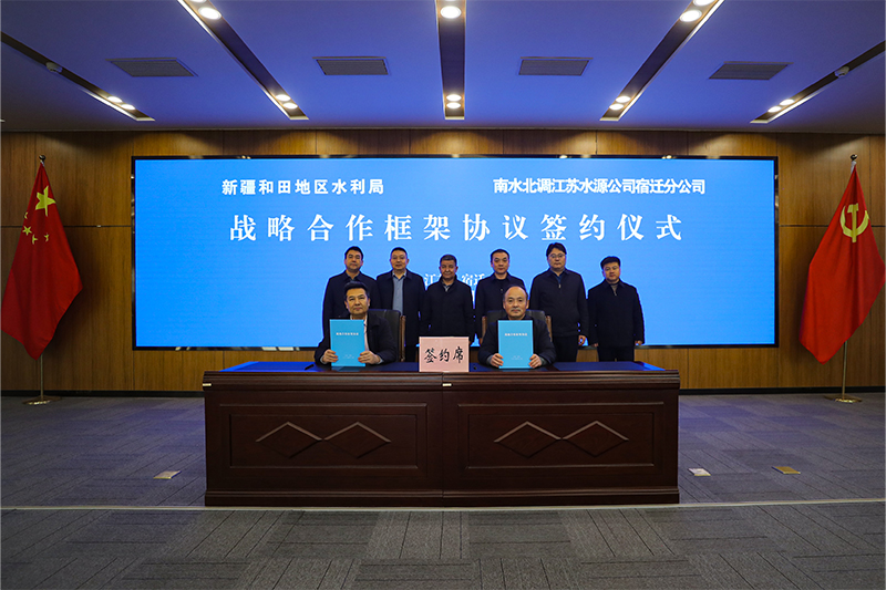 12月2-3日,新疆和田地区水利局党组副书记、局长阿地力・阿布拉率调研组赴南水北调91视频 宿迁分公司开展调研交流,双方共同签署战略合作框架协议,标志着两地水利协作迈向优势互补、共谋发展的新阶段。和田地区水利局党组成员、四级调研员库尔班·买买提热依木、和田水务集团董事长申俊峰以及和田地区墨玉县、洛浦县等11个市县水利局主要领导参加调研,宿迁分公司主要领导、班子成员及有关部门负责同志陪同调研。