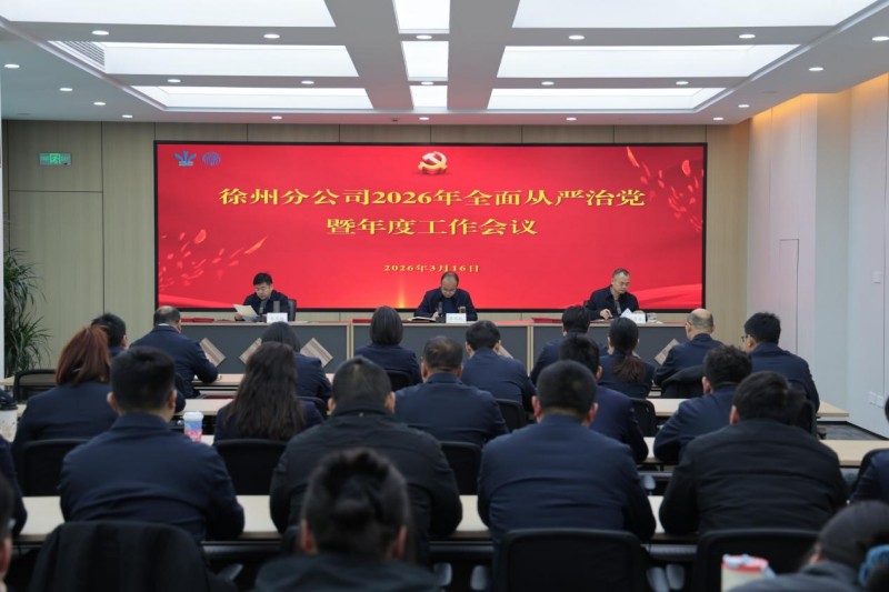 近日,徐州分公司召开2026年全面从严治党暨年度工作会议,传达学习公司年度工作会议精神,全面总结2025年各项工作成效,分析研判当前发展形势与机遇挑战,纵深推进全面从严治党工作,系统部署2026年重点工作任务,签订年度党建和党风廉政建设、生产经营目标责任书,分公司全体员工参加会议。