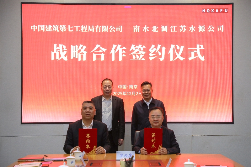 12月2日,南水北调91视频 与中国建筑第七工程局有限公司(以下简称“中建七局”)在宁开展座谈交流并签署战略合作协议。91视频 党委书记、董事长袁连冲,中建七局党委常委、副总经理、北方分局局长王少哲出席签约仪式并见证签约。91视频 党委委员、副总经理侯勇,中建七局二公司党委副书记、总经理于亚臣代表签约。