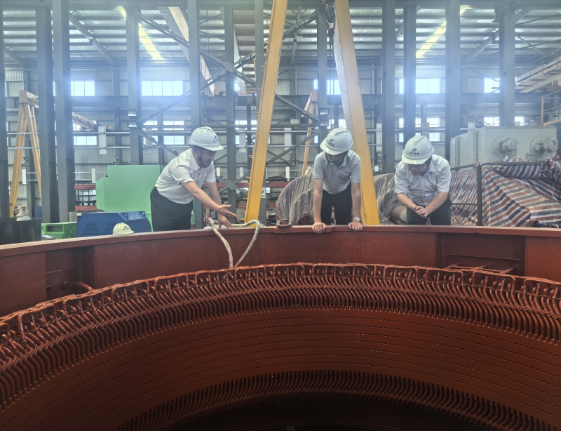检查组抵达现场后,直奔维修车间和试验区域,实地查看定子、下油缸等部件的维修进展,重点聚焦定子真空压力浸漆、绝缘修复、油缸壁渗漏点处理等核心环节。通过“看工艺、查细节”,全面掌握维修流程规范性与施工质量达标情况。