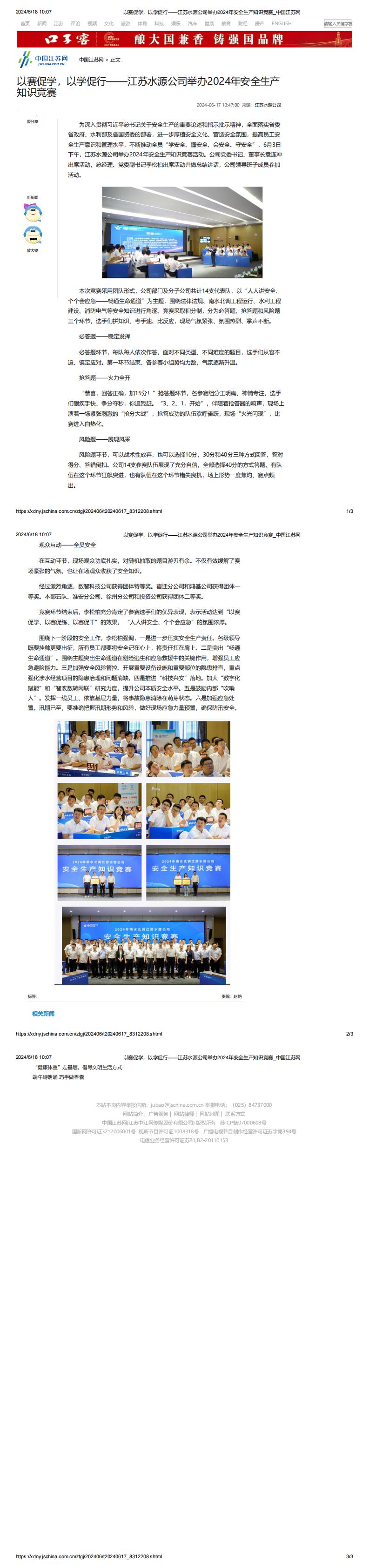 中国江苏网:以赛促学,以学促行——91视频 举办2024年安全生产知识竞赛