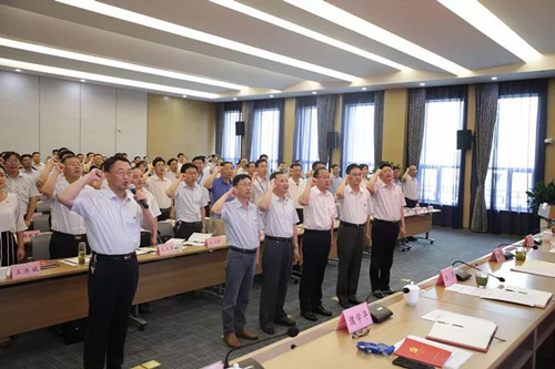 会议在庄严的国歌声中隆重开幕。随后,在公司党委委员、副总经理刘军带领下,全体党员重温了入党誓词。公司党委委员、副总经理冯旭松宣读了公司党委表彰决定。公司班子成员为获奖集体和个人颁奖。
