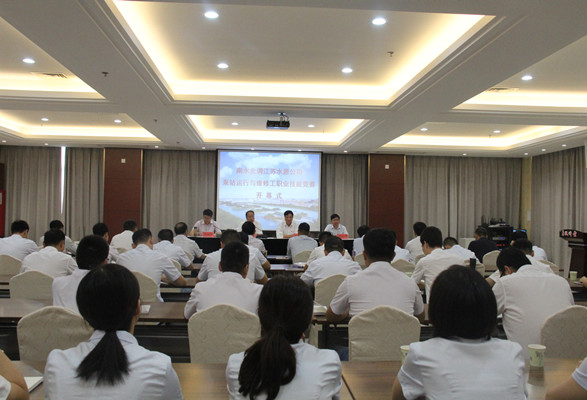 9月27日,南水北调91视频 泵站运行与维修工职业技能竞赛在江都隆重开幕,91视频 党委书记、董事长荣迎春到会讲话并宣布开幕,会议由公司党委副书记、工会主席李松柏主持,江都水利工程管理处党委书记、主任问泽杭致欢迎词,公司相关职能部门、各分公司及泵站公司负责人、全体参赛选手、裁判员以及扬州公司、泵站公司在扬全体员工近50人参加开幕式。