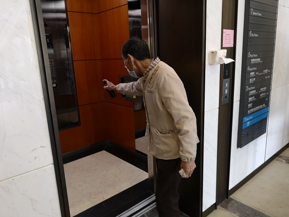 电梯内外悬挂纸巾盒,配备专用垃圾桶