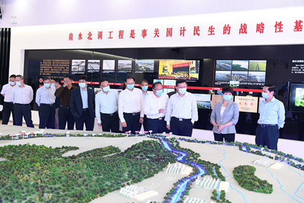 蒋旭光一行先后来到南水北调91视频 总部大楼、扬州市江都水利枢纽、南水北调洪泽站、解台站等实地调研。在91视频 ,蒋旭光一行查看了江苏南水北调调度指挥中心、展陈室、五星级档案馆、“水源红”党建文化活动阵地等,观摩了工程智能化调度运行系统演示,并召开座谈会详细了解了91视频 在经营拓展、企业管理、队伍建设等方面情况。在江都水利枢纽,蒋旭光一行调研了江苏南水北调工程展览馆、江都水利枢纽展览馆和江都第四抽水站等地,听取了江苏治水历程、江水北调工程和江都水利枢纽等情况介绍。在洪泽站和解台站,蒋旭光一行实地考察工程运行管理、维修养护、安全生产、标准化建设和水生态资源开发利用成效等情况。