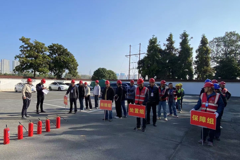 随后,在专家的指导下,现场开展了疏散逃生、灭火器使用、应急救援等实操演练。模拟工地现场发现“火情”后,安全员立即启动火灾应急预案,救援组迅速组织人员疏散和伤员救助,处置组根据火灾类型组织灭火,保障组及时提供灭火器材、担架、急救箱等救援物资,并负责通讯联络。整个演练紧张有序,达到了全员参与、全员了解、全员掌握的预期效果,有效提升了应对火灾的应急处置能力。